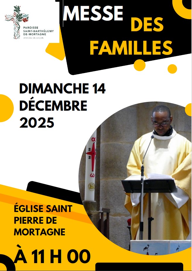 Messe des Familles du dimanche 14 Decembre Posted in Informations Navigation de l’article Previous Previous post: Visitation des Paroisses St Henri Dorie de Talmont et St Barthélemy de mortagneNext Next post: Programme des messes de Famille à Mortagne sur Sèvre