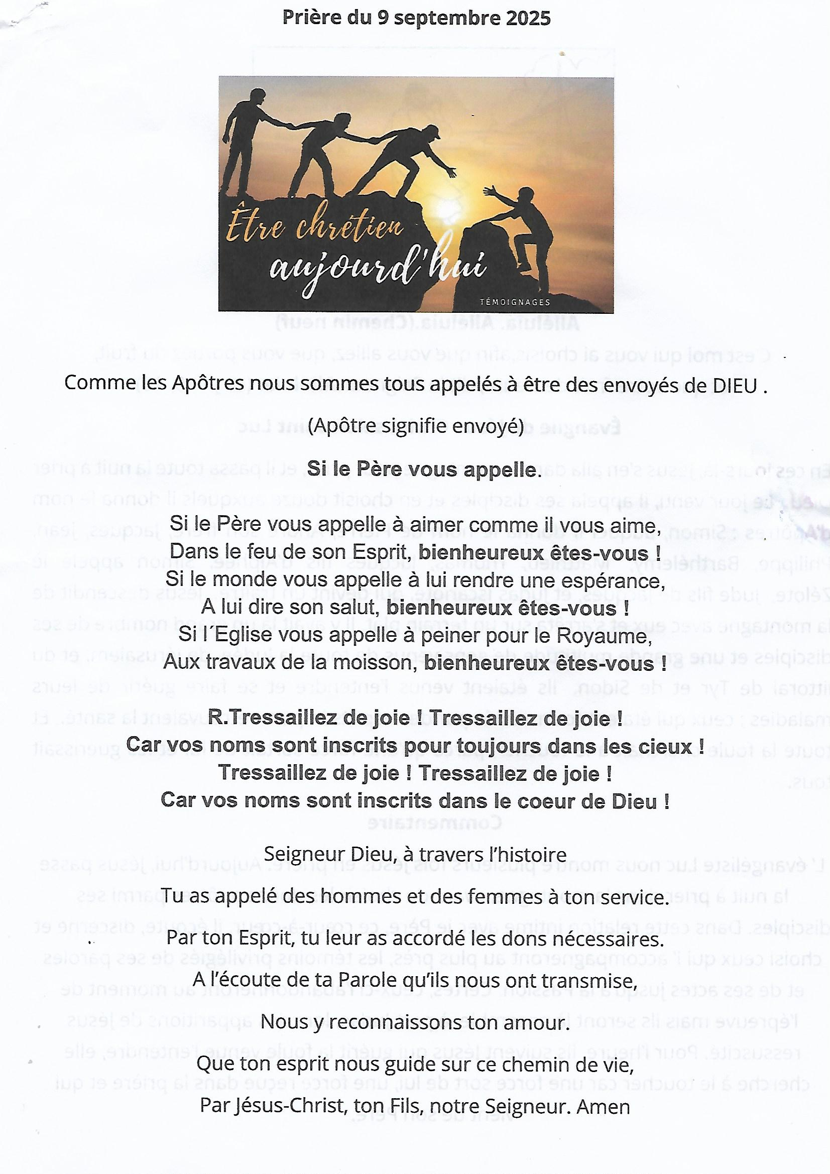 Prière du 9 septembre 2025 Posted in Paroisse, Prière du mois Navigation de l’article Previous Previous post: Informations Polyphonie septembre 2025Next Next post: La visitation à la paroisse Saint Henri Dorie de Talmont