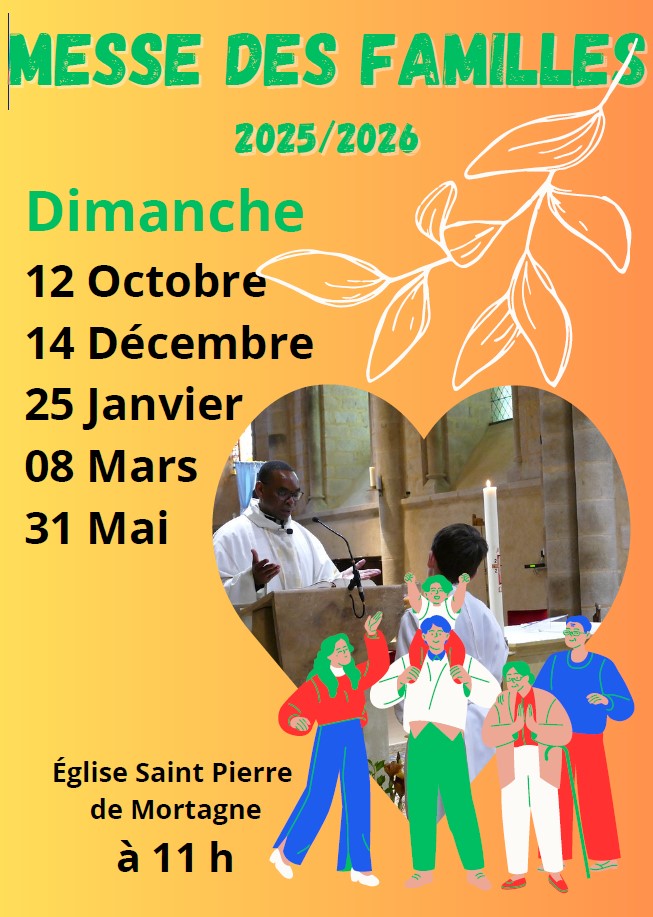 Programme des messes de Famille à Mortagne sur Sèvre Posted in Informations Navigation de l’article Previous Previous post: Messe des Familles du dimanche 14 DecembreNext Next post: Après la sonnerie, fonce à l’aumônerie